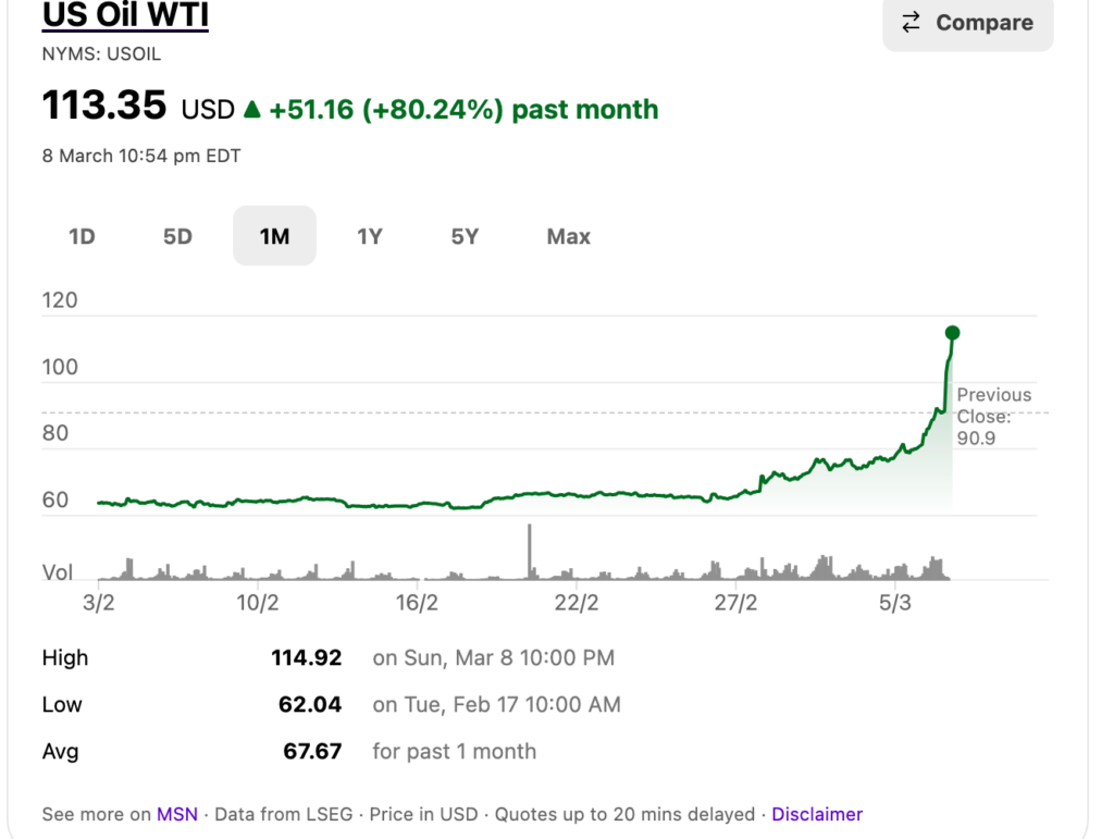 • Conflict in middle east doubles oil price